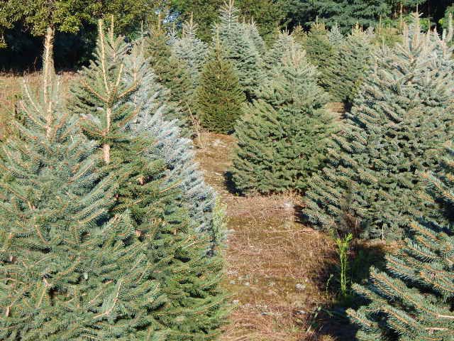Picea pungens glauca Kaibab: átlag 50 % ezüstös színű, többi kékeszöldes. Karácsonyfának jó.